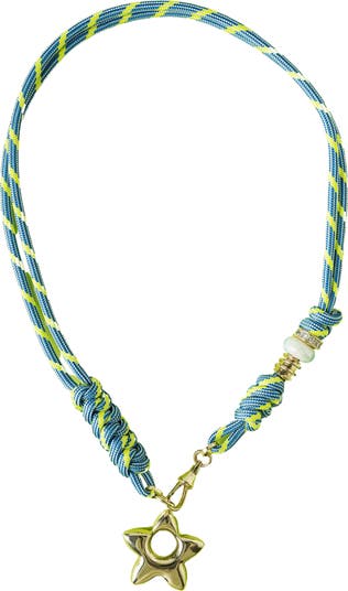 A paracord necklace brings a playful outdoorsy feel to your ensembles. A golden pendant and a trio of beads create an elevated shine.