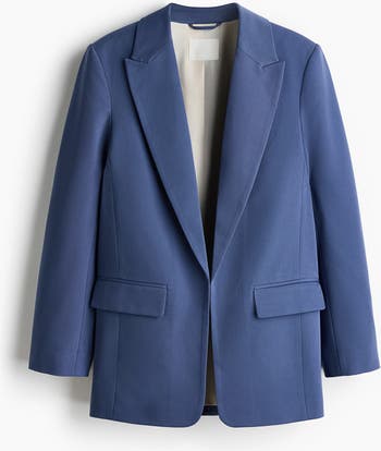 Blazer in twill with peak lapels, an open front and jetted front pockets with a flap. Long sleeves that can be folded to expose the striped sleeve lining. Lined.