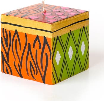 Funky bright colors are used to make these WILD animal print candles! *Lovingly hand poured and hand painted in South Africa. *Crafted primarily by single mothers from the local rural community. *On average, each artisan supports an extended family of 12-15 people. PRODUCT DESCRIPTION: *Highest quality natural paraffin wax with 100% cotton wick *Unscented, smokeless, and free from added toxins *Tapers packaged as a matched pair *Each candle is uniquely made. Your delivered candle will likely appear slightly different from the website photo, but consistent with the theme of the collection.