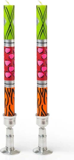 Funky bright colors are used to make these WILD animal print candles! *Lovingly hand poured and hand painted in South Africa. *Crafted primarily by single mothers from the local rural community. *On average, each artisan supports an extended family of 12-15 people. PRODUCT DESCRIPTION: *Highest quality natural paraffin wax with 100% cotton wick *Unscented, smokeless, and free from added toxins *Tapers packaged as a matched pair *Each candle is uniquely made. Your delivered candle will likely appear slightly different from the website photo, but consistent with the theme of the collection.