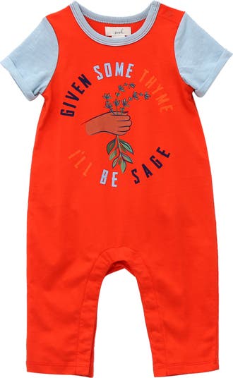 Peek Aren't You Curious Thyme Graphic Cotton Romper, Alternate, color, Red