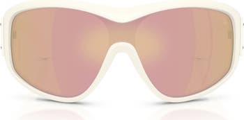 Signature logos accent the temples of Italian-made sunglasses shaped in an wide oval profile and fitted with UV-protective lenses.