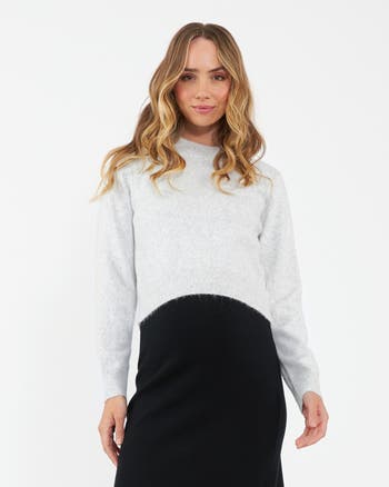Inspired by vintage sweaters, this timeless style is cropped with a relaxed feel and ribbed detailing. The Tia Crop Knit is crafted from a fully-fashioned knit, providing you with warmth and breathability. It features a classic round neckline and long sleeves for a clean and sophisticated look. We love it layered over dresses and skirts, or with high-waisted knit pants and sneakers for a timeless look. Semi fitted Fully fashion knit Round neckline Soft yarn Long sleeve Non nursing 50% Polyester, 46% Viscose, 4% Nylon Length: 49cm (size small)