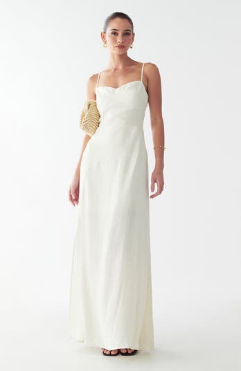 The TIA DRESS by ST MRLO is an elegant maxi-length dress designed for sophisticated summer occasions. Crafted with a clean, structured profile, this pristine white dress offers a timeless silhouette that transitions seamlessly from daytime events to evening celebrations.
