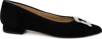 A sparkling buckle detail brings a touch of sophistication to this sleek pointed-toe flat.