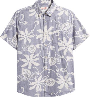 A tropical print invites relaxing breezes in a shirt cut from breathable cotton and styled a curved hem that looks great when you leave it untucked. Wear it on its own or layered and unbuttoned to change up your look without losing your comfort.