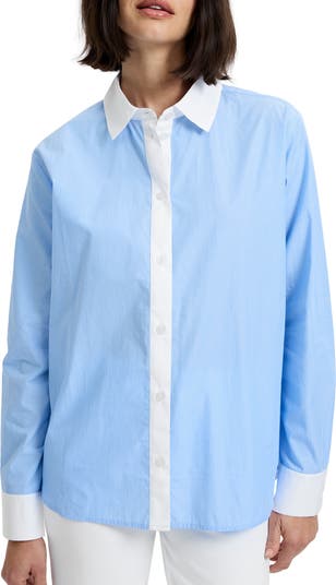 Slim stripes and contrast details polish a staple shirt cut in a generous fit from crisp cotton poplin.