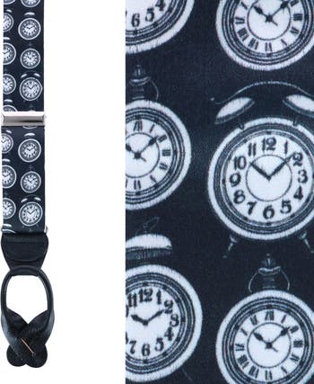- Time is ticking with these classy suspenders featuring multiple clocks