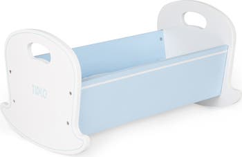 Rock-a-bye baby, it's time for lights out! Littlens can sing sweet lullabies and rock their soft dolls off to sleep with Tidlo's cosy Doll Cradle. The rocking base adds to the lifelike touches of the cradle and the blue polka dot design gives it a homely feel.Embracing kids role play toys does wonders for children's creativity, imagination, language skills, and social and emotional development. When playing with others, it can also teach them how to collaborate and explore new ideas, working as a team to think of and act out different storylines. Add on Tidlo's Doll High Chair and Stroller to complete the set.Tidlo's Dolls Cradle is made from high quality, sustainably sourced FSC® Certified wood. Conforms to current European safety standards. H 53cm x W 30cm x D 29cm. Ideal for 18+ months.
