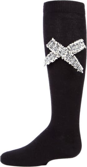 Your daughter wants her personality to reflect in all her clothes -- even her socks. Tidy Little Bow Girls Knee Socks add a touch of that personality right to the sides of ordinary knee socks. A tweed bow in contrasting colors breaks up the monotony of the plain sock, while a pinch of sparkle throughout the tweed elevates the bows from basic to anything but.