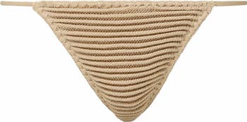 Designed for a low-rise fit, this classic swim bottom has adjustable side ties and offers moderate back coverage. Fully lined Crochet-like fabric, lined with swim fabric Hand wash in cool water. Do not bleach. Do not tumble dry. Hang to dry. Do not iron For best fit, order one size down. May require alteration; discounted price is reflective of sizing issue.