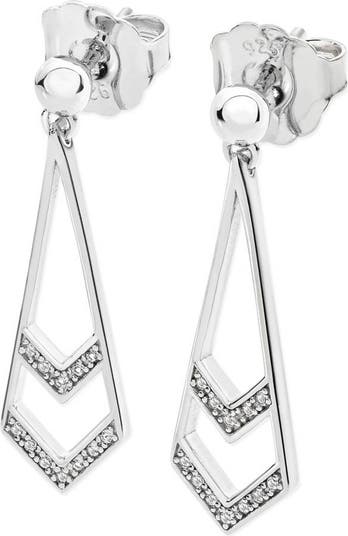 Elegant Tie Earrings from the Art Deco collection. Perfec for an everyday glam look. Set with White Topaz Gemstones 925 Sterling Silver with Rhodium Overlay Hand Made from the highest quality 925 Sterling Silver and Hallmarked in the UK. Rhodium Overlay to help prevent tarnishing and to increase shine, lustre, and durability.