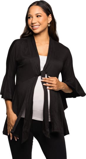 Add effortless elegance to your everyday looks with this tie front maternity cardigan top. Featuring flowy bell sleeves and a flattering open front with a tie closure, it layers beautifully over casual or dressy outfits. The soft fabric and feminine cut make it a versatile piece for year round wear.