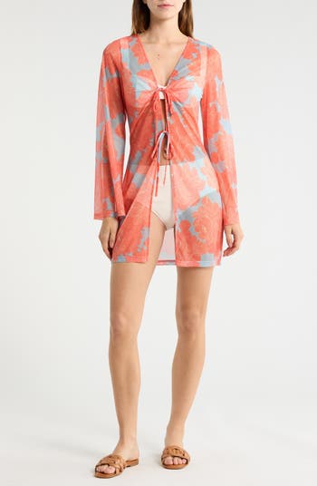 Layer your beachy look with this sheer mesh cover-up that has dainty ties for an easy fit.