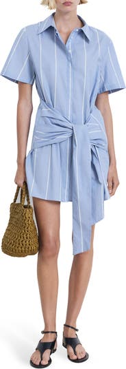 Crisp stripes pattern a lightweight cotton shirtdress with wide adjustable ties that give shape to waist.