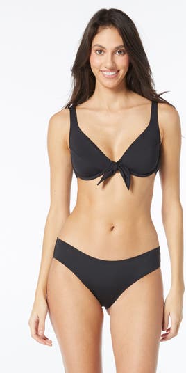 Mix and match the Vince Camuto Tie Front Bra Bikini Top with all your bikini bottoms. With a front tie detail, it makes a classic bikini top feel fresh and femme from a dive in the pool to a stroll in paradise.