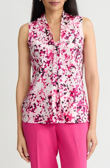 A draped tie at the neck enhances the polished feel of this sleeveless top made from fluid, bias-cut satin in a comfortably relaxed fit.