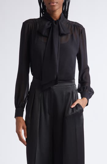 Washed silk chiffon transforms this tie-neck blouse with matching cami into a study in modern refinement. The flowing ties are both functional and dramatic—wear them neatly tied for an architectural finish or unfastened to evoke soft, shawl-like movement.