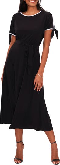 Ties detail the split sleeves of a day-to-night midi dress in an always flattering fit-and-flare silhouette cut from soft, stretchy jersey.