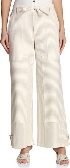 A slender tie defines the waist of these comfortable stretch-cotton pants made with light but lively stripes and finished with drapey wide legs.