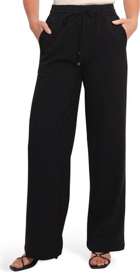 Flowy wide legs shape the silhouette of these lightweight pants made with a tie waist and a kiss of stretch for comfort.