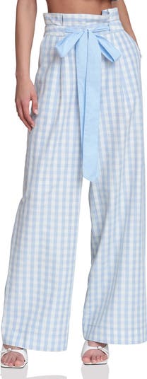Cheerful checks and a charming bow-tie waist lighten the mood of these polished wide-leg pants.