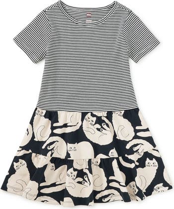 Made for movement, spins, and everyday fun. This Tier Skirted Twirl Dress pairs a fitted ribbed bodice with a drop-waist, tiered skirt designed to swish and swirl with every step. Artist-drawn prints bring personality and charm to an easy, wear-anywhere silhouette. Thoughtfully made for comfort and long-lasting wear, it's designed to be worn often, washed well, and passed along when the time comes. Finished with short sleeves and a classic crew neckline, it pairs perfectly with leggings or Somersault Shorts for play-all-day versatility.