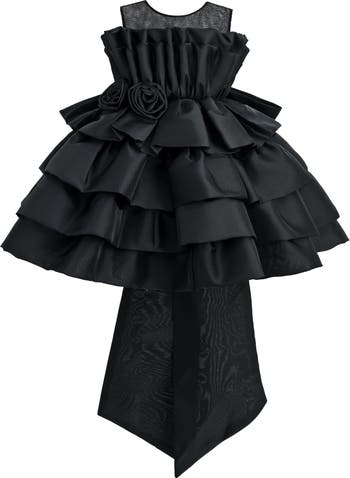 A show-stopping silhouette with layers of ruffles and a dramatic bow—perfect for twirls, photos, and grand entrances. Voluminous tiered skirt with gathered bodice and zipper back. Oversized bow with flowing tails adds elegance from behind.
