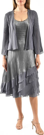 Tiered Charmeuse & Chiffon Cocktail Dress with Jacket