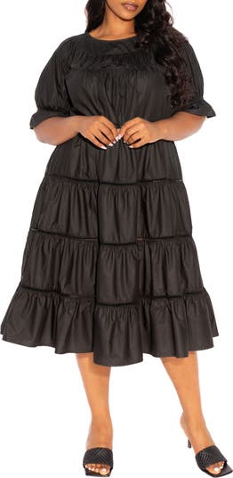 Rows of ruffles joyfully animate a tiered dress cut from polished cotton-blend poplin.