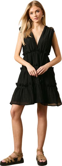 Oasis Tiered Detail V-Neck Mini Dress, Main, color, Black