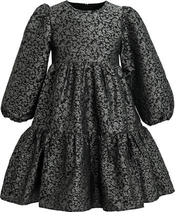 A dark floral dress with a fitted bodice, puff sleeves, and a full tiered skirt—designed for graceful movement and everyday elegance. Comfort meets charm: elastic puff sleeves and round neckline make dressing easy. Soft drama: moody floral print and layered skirt add volume and visual interest.