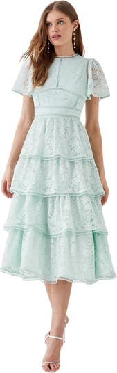 This enchanting Coast tiered lace dress showcases timeless sophistication with its beautifully crafted design. The delicate flutter sleeves frame the shoulders with graceful movement, while the tiered skirt creates a captivating silhouette that dances with every step. Perfect for weddings, the races or formal garden parties, this dress conveys refined elegance without effort. For cooler evenings, layer with a tailored blazer or delicate pashmina.