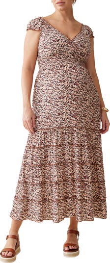 A smocked empire waist and billowy tiered skirt detail a day-to-night maxi dress designed with plenty of room for your growing baby bump. Plus, the surplice V-neck allows for discreet, easy nursing once baby arrives.
