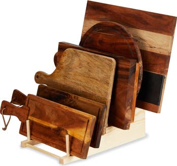 Step up your presentation with the Tiered Cheese Board Display Rack. Crafted from durable pine wood, this tiered display rack offers a unique and stylish way to showcase a variety of cheese boards, charcuterie, or other serving platters. The stair-step design provides a multi-level layout, making it easy to view and access your beautifully arranged selections. This space-saving rack enhances any display with its natural wood finish and functional design.