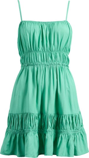 This lightweight cover-up sundress features dimension-creating gathers and soft ruffles that bring billowy movement to your poolside look.