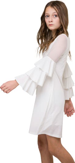 Tiered ruffles form the sleeves of a sweet shift dress that's just the ticket for any special occasion.