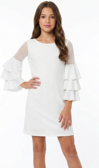 Tiered ruffles form the sleeves of a sweet shift dress that's just the ticket for any special occasion.