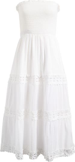 This lightweight cover-up sundress features dimension-creating smocking and gathered tiers that bring billowy movement to your poolside look.