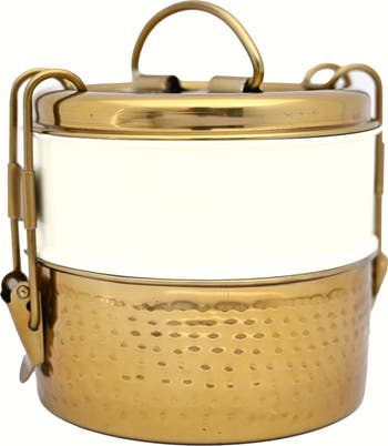 Embrace the tradition and elegance of the Indian Medium 2-Layer Tiffin, a beautifully crafted metal piece made in India. This versatile tiffin is perfect for packing lunches, storing leftovers, or presenting meals in a stylish, eco-friendly way. Each layer securely stacks to keep food fresh and separated, making it ideal for both home and on-the-go use. Add a touch of Indian craftsmanship to your daily routine with this practical and beautifully designed tiffin.