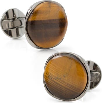 Smooth tiger's eye cabochons fill these sterling silver cuff links with beautiful neutral tones.