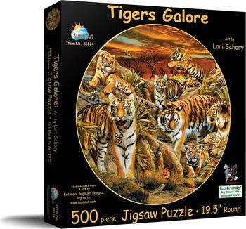 Sunsout Tigers Galore 500 piece Jigsaw Puzzle for Adults Round, Main, color, Multicolor
