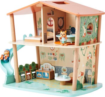 They will love learning about sustainability while playing house with this fun family of two tigers and their two-level jungle home.
