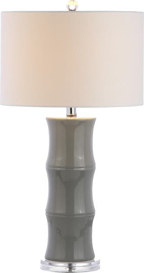 This eye-catching gray ceramic table lamp takes its inspiration from the beauty of natural . The resulting look is a perfect balance between Asian and modern styles, with a preppy flair. Nickel accents, a crystal base and a white cotton drum shade keep the look contemporary and fresh.