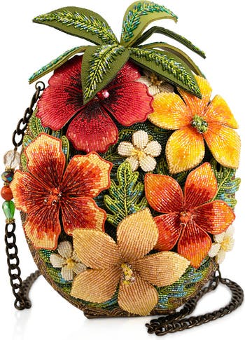 Bursting with tropical flair, this vibrant pineapple-shaped handbag is like carrying a little island getaway in your hand. Covered in ornate beaded blooms and finished with whimsical leaf details, it’s the perfect accessory for bringing sunshine wherever you go.