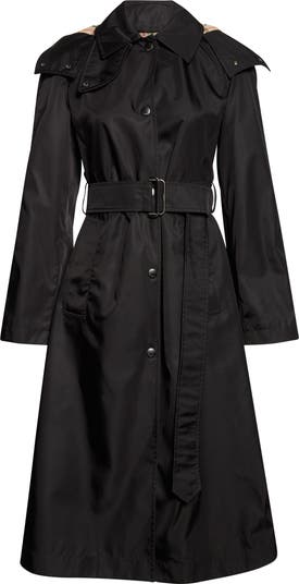 The instantly recognizable checks line the interior and detachable hood of this lightweight trench coat cut in a tailored slim fit.