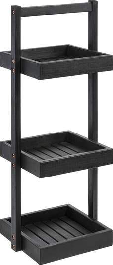 HAPPIMESS Tilly 30" Classic Rustic 3-Tier Acacia Wood Freestanding Bathroom Shower Caddy, Alternate, color, Black