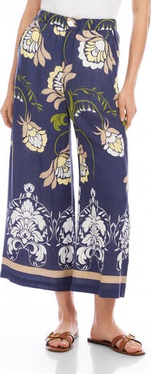 A cropped, wide-leg silhouette keeps your look effortlessly cool in printed pants topped with a comfortable elastic waist.