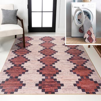 Inspired by kilim rugs, our machine washable geometric-striped rug adds graphic punch to your home. Classic medallion trellis pattern has been updated with a modern color palette that's ideal for mid-century interior design. This easy-care, family-friendly rug is a smart addition to your living room, dining room, entry, or bedroom.