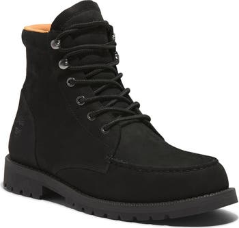 Take on the trail in style in this handsome moc-toe boot outfitted with TimberDry waterproof protection and an Ortholite® footbed that offers incredible comfort. A Gripstick™ lugged outsole ensures enhanced traction.